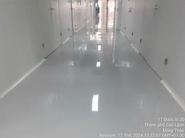 - Bề mặt sàn hoàn thiện bóng mịn, không gợn sóng, đạt chuẩn GMP.